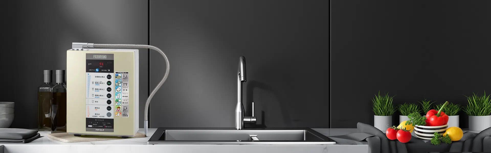 The domestic ionizer infuses purified water with molecular hydrogen (Hâ‚‚) through advanced electrolysis technology.